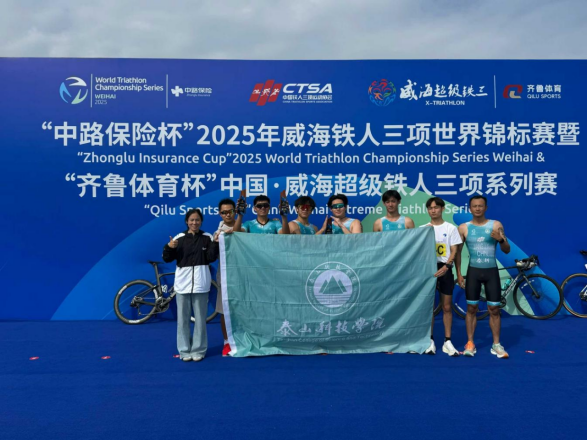 2025年9月27日,由中国铁人三项运动协会、山东省体育局、威海市重大体育赛事组委会主办的2025中国威海超级铁人三项系列赛成功举办。我校铁人三项队5名队员在领队竞技体育中心刘哲主任、国家级运动健将魏巍,教练组国家级运动健将杨玲、国家一级运动员姜嘉祥的带领下,斩获半程男子团体组全国季军、超级铁三全程接力组全国季军。首次参赛即获得优异成绩,向全国铁三舞台展示泰科的竞技体育育人实力。