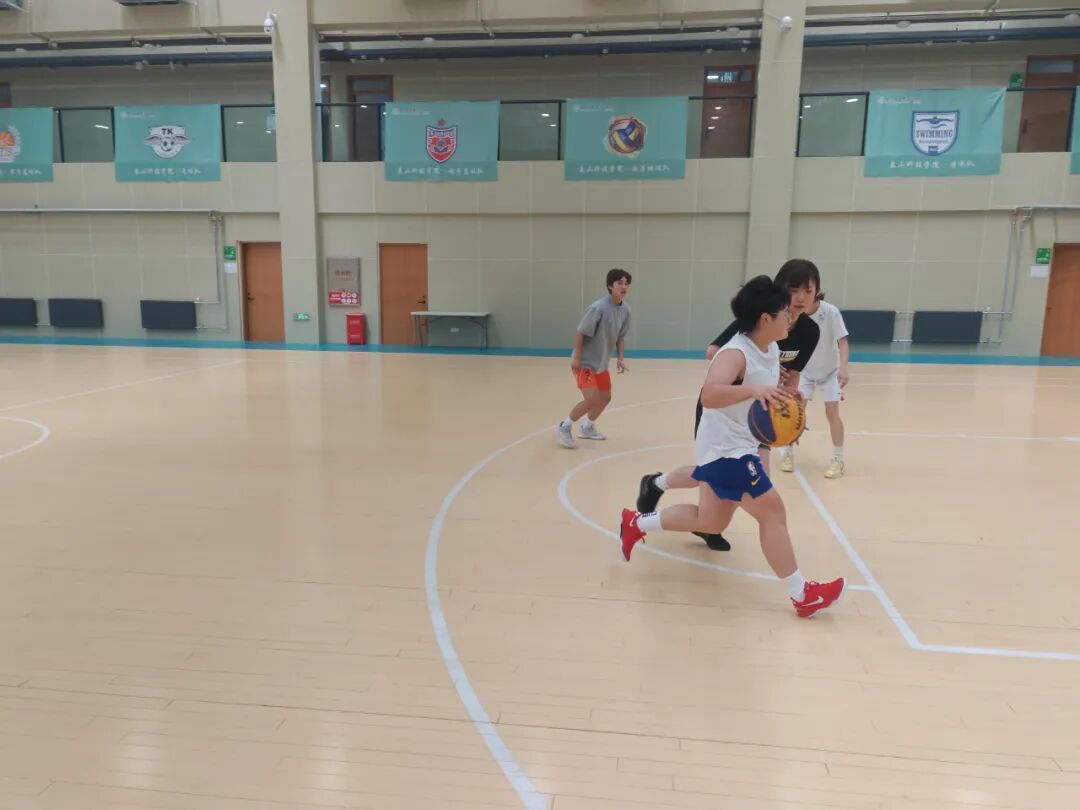 2025年5月3日,校女子篮球队的姑娘们在岳动馆篮球场上挥洒着汗水。